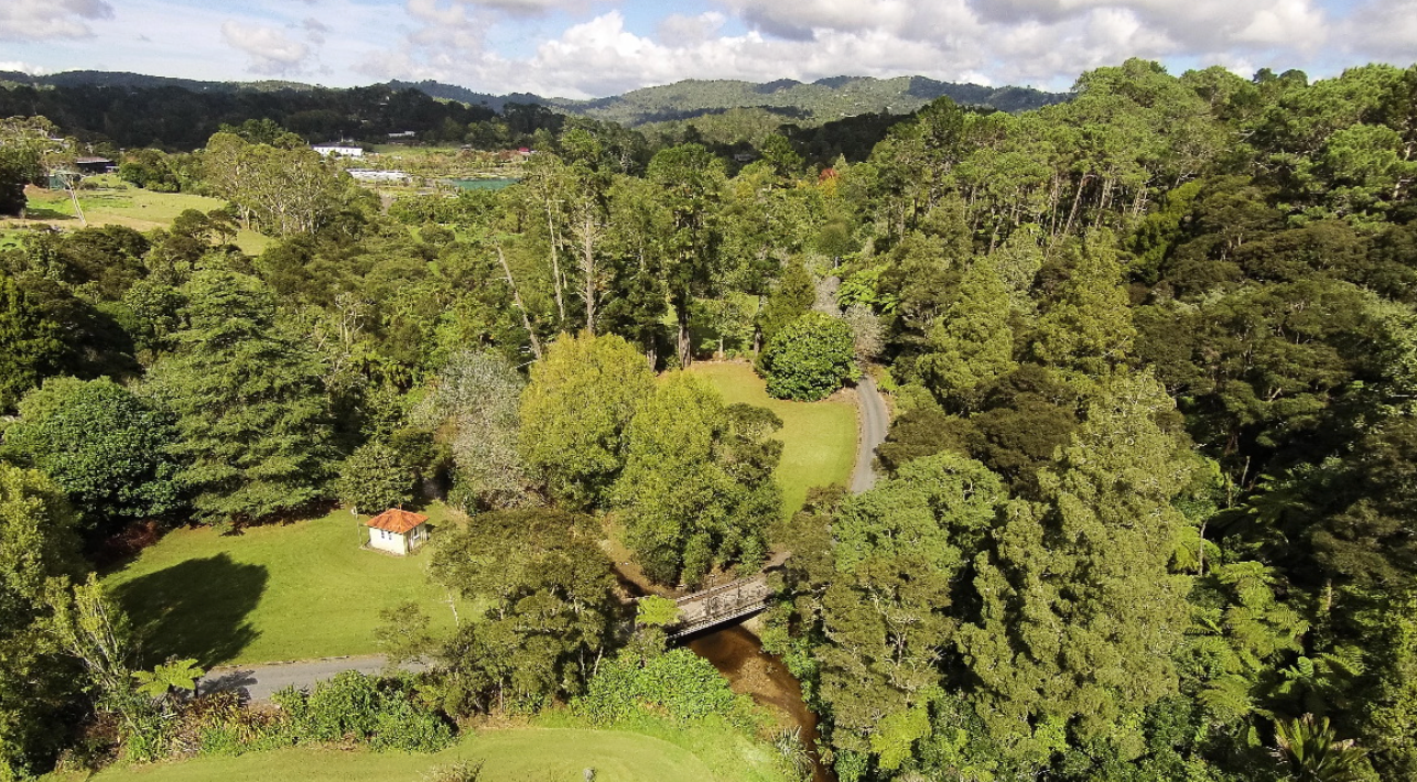 Bella Rakha is set located in Oratia Valley, at the base of the Waitakere Ranges. Bella Rakha has 32 acres, with about 12 acres of park like grounds, and 20 acres of native bush. They are bounded on the eastern side by Oratia Stream, which crosses under the sculpture bridge halfway down the driveway. There are large fields and clearings, native bush land, gardens and a beautiful stream walk.